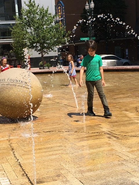 After a few hours of exploring, nibbling and imagining, we headed out to the Tom McCall Waterfront Park. The kids climbed on rocks, played in fountains until they were drenched, then walked themselves mostly dry until we all caught an orange line train home. A few hours quiet time, making dinner and reading stories, got us ready for a nice evening.