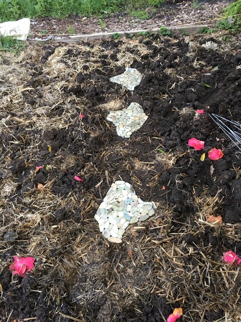 The soil was very lumpy, and I spent a lot of time crumbling the clods between my fingers, making a smoother bed for my seed babies. I sprinkled the seeds in and patted the soil gently, laying down a bit of of decomposed straw over the top to keep them damp.