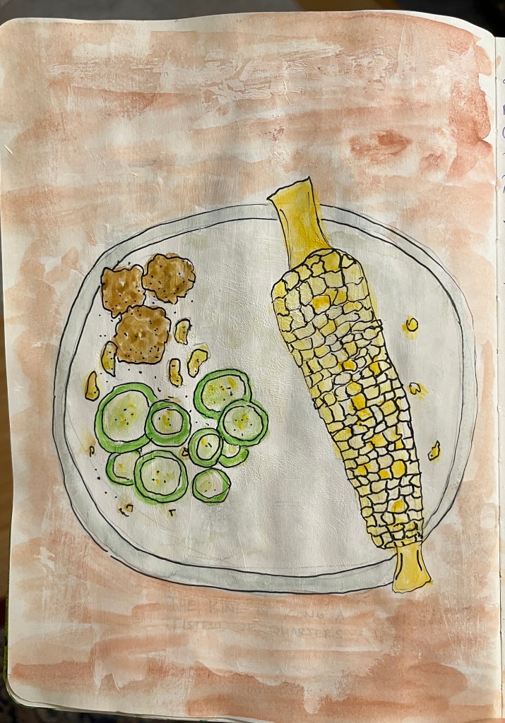 … and watercolor when I knew exactly what I wanted to show, in this case, how the first zucchini ended up.