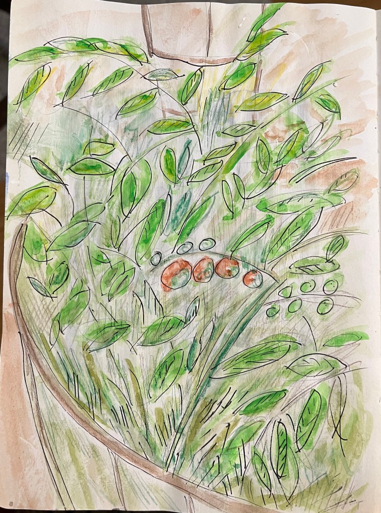 Auntie Bridgett went along with me, though she is not a gardener; there is too much mud involved for her liking. But she wanted to draw the garden, keep me company, and make notes. That’s what she does.