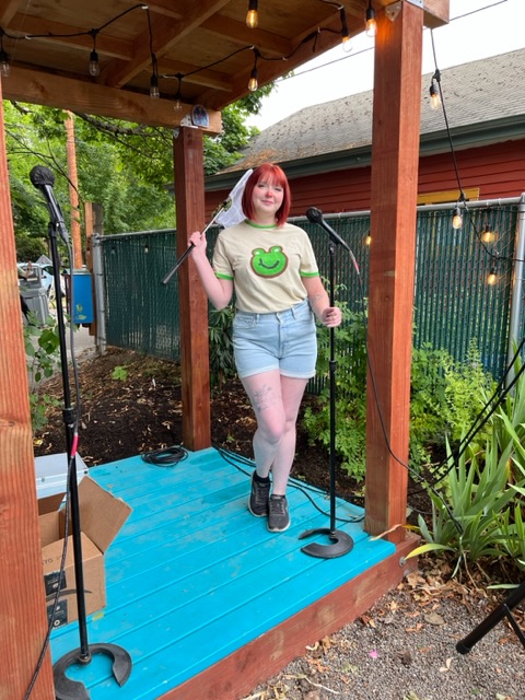 The rose gardens in the Ladd’s Addition Rose gardens are getting ready to bloom! This little guy is showing color already, and by Monday when Katie gets back, there will be lots of blossoms.