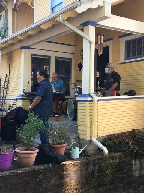 Gordon Lee and his small jazz band were putting on one of their free Front Porch concerts down at Alder and 32nd. About fifty folks brought folding chairs, wine, and snacks to enjoy fellas on piano, drums, a stand up bass, and both an alto and a tenor saxophone play music. Jazz Standards, like “Nature Boy”, as well as new pieces like Gordon’s ode to the former President, “Sulking on the Golf Course”, were delightful, as was the parade of kids, dogs, bikes and regular folks. It was pure Portland.