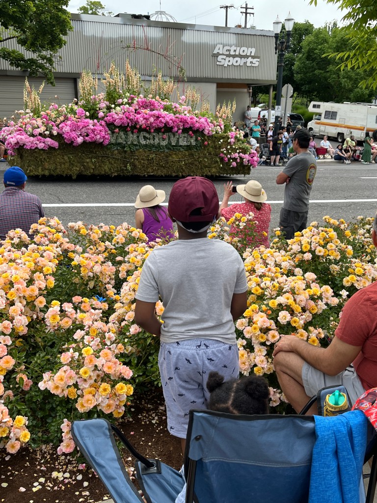 Last Saturday was Portland’s Rose Parade, and we took the number 75 to the Red line train to get there. It was a delightful, sunny, breezy day, and thousands of folks had lined up before we got there!