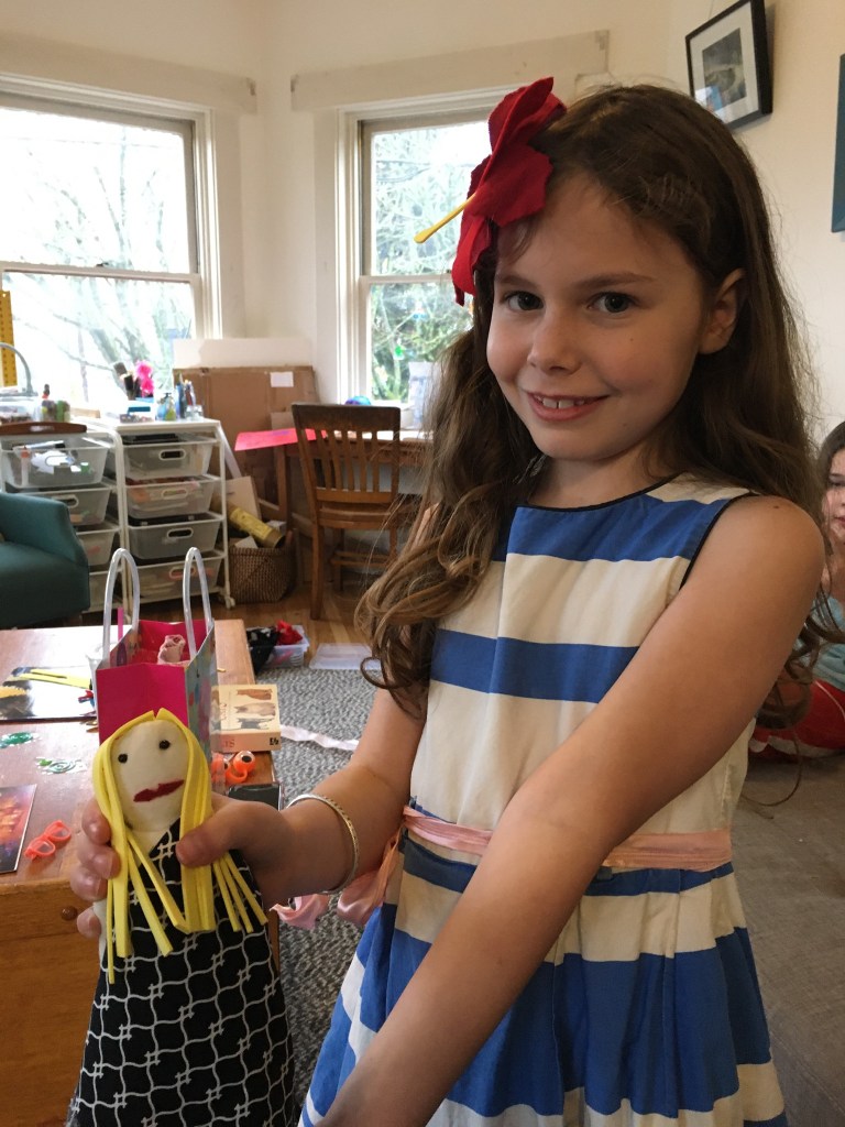 When I got to Auntie Katie’s shop, I gave her some pinwheel cookies and headed upstairs to see the Cousins. They had a day off from school and were in art project mode. Kestrel was making a hibiscus headpiece as part of her Marin costume. Marin is a character from The Legend of Zelda. It is adorable.