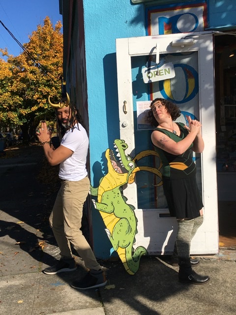 We headed out to have some fun and take pictures in the glorious sunshine. A Mushroom Fairy, top-hatted ghost and stylish Loki were very photogenic! Even Nick, Katie’s second-in-command at Books with Pictures, got into the spirit.