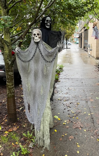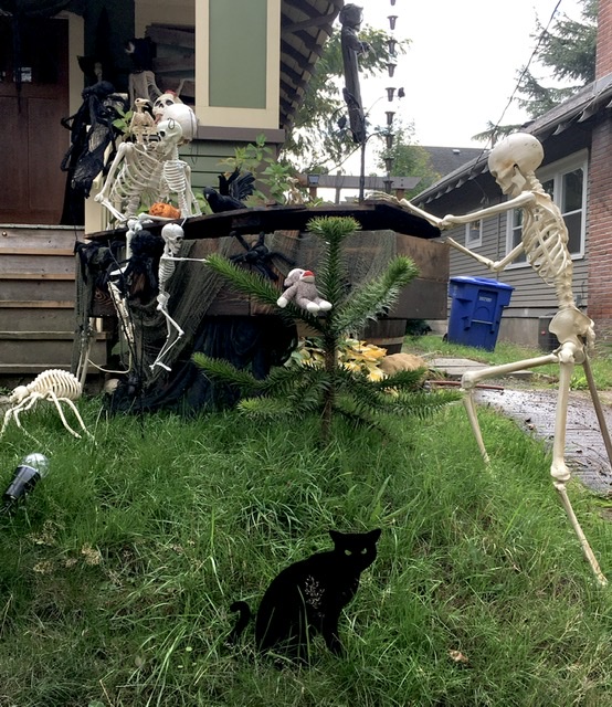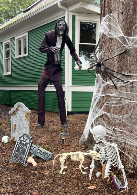 Looking at all the Halloween decorations for sale in the markets, I got inspired to build an illuminated haunted house. I started with old postcards, junk mail, Mod Podge, and a UHU glue stick.