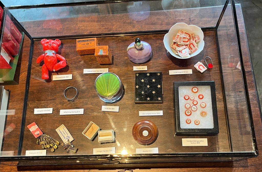 Besides the usual quirky antiquities and tchatchkies, there is a show this month and next of Allie Yacina’s sketchbooks and art.