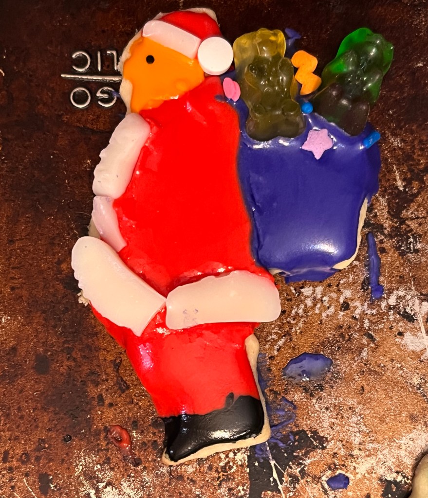Katie even made sense out of Grandma Billie’s Santa shape. It looked wonderful, with gummy bears coming out of the sack!