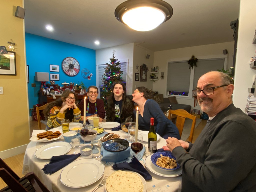 This year, Christmas Day evening was also the first night of Hanukkah, so of course we combined the two and had a fine time with Auntie Katie and the Cousins.