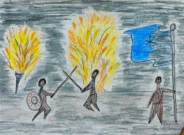 This one has an expanded cast of you, me, Cousin Kestrel and Auntie Katie, and a supporting cast of your Daddy David, Cousin Jasper, Momma Olga, and Grandpa Nelson. We are all involved in a Scavenger Hunt Quest to learn about the Vikings and their place in Danish History.