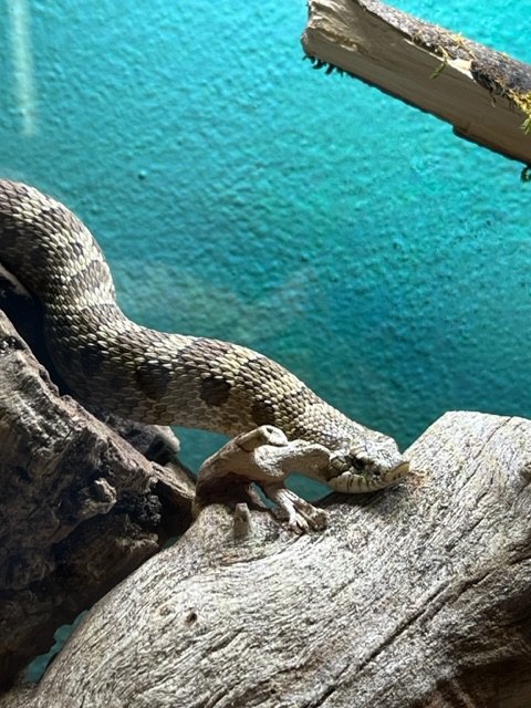 Restored and refreshed by the pie, I had a visit with Sir Isaac Snooten, Kestrel’s hog-nosed snake. He has a new, larger enclosure and has gotten so big! He is a happy, social, snake boy.