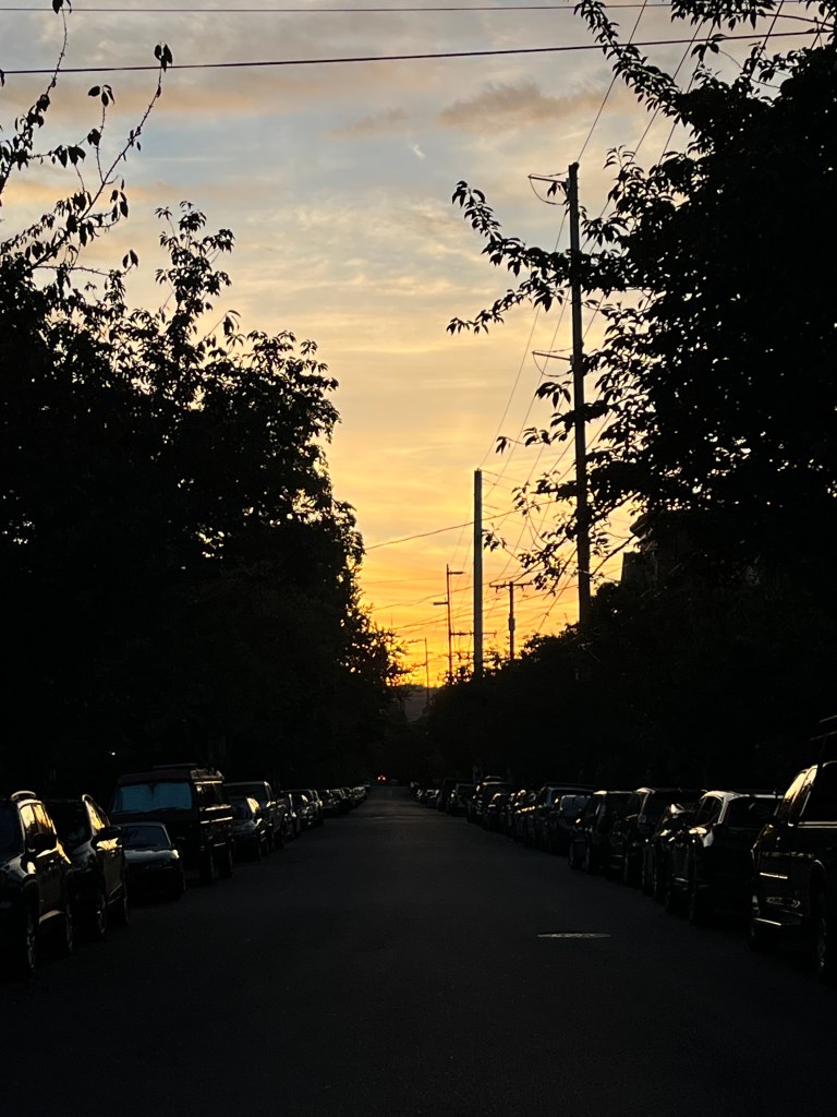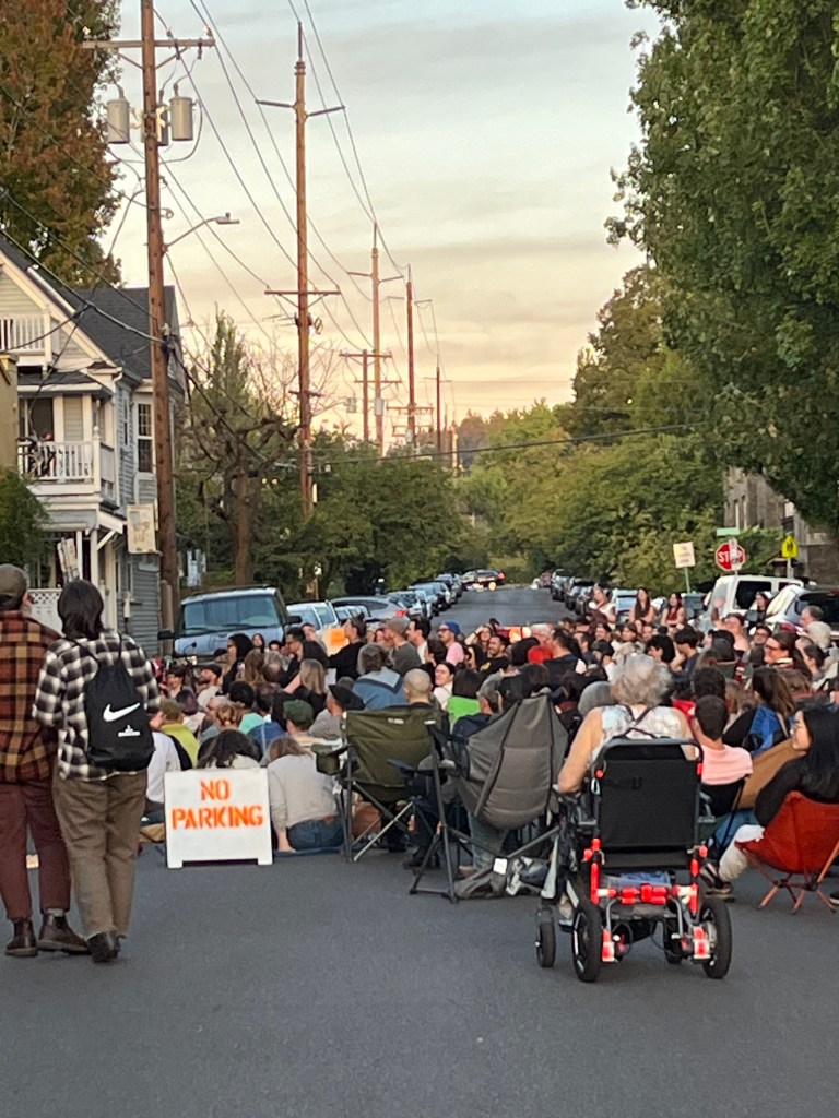 Last evening, we were coming home after a longer-than-expected walk, just a few blocks from home, when we noticed people forming a crowd in the middle of the street by Sunnyside School’s playground.