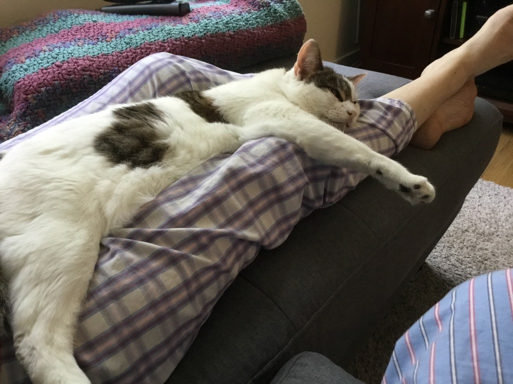 Before we all had to stay inside so much, Grandpa Nelson and I would take long walks all over the city. We walked eight miles to Sellwood one day, and four miles up to Klickitat Street on a regular basis. But now, with social distancing and not wanting to spread the virus, we are staying inside. We sit on the couch with the cat, reading or talking or watching television.