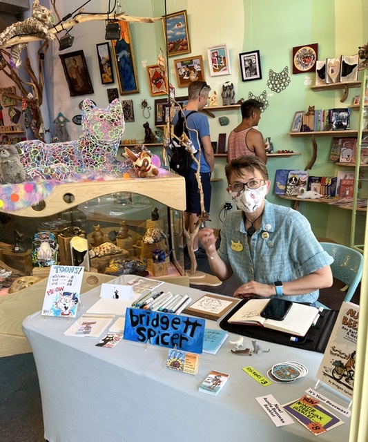 As the crowds started showing up, Bridgett started drawing, and several folks came by to ask about hiring her to draw their cats! She said yes, of course!