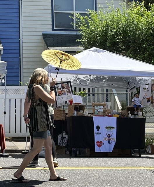 Now that I am back in Portland, I will address my letters to you. This past Saturday was the biggest street fair in the city, The Mississippi Street Fair. I helped Auntie Bridgett get her table set up in front of Gifty Kitty.