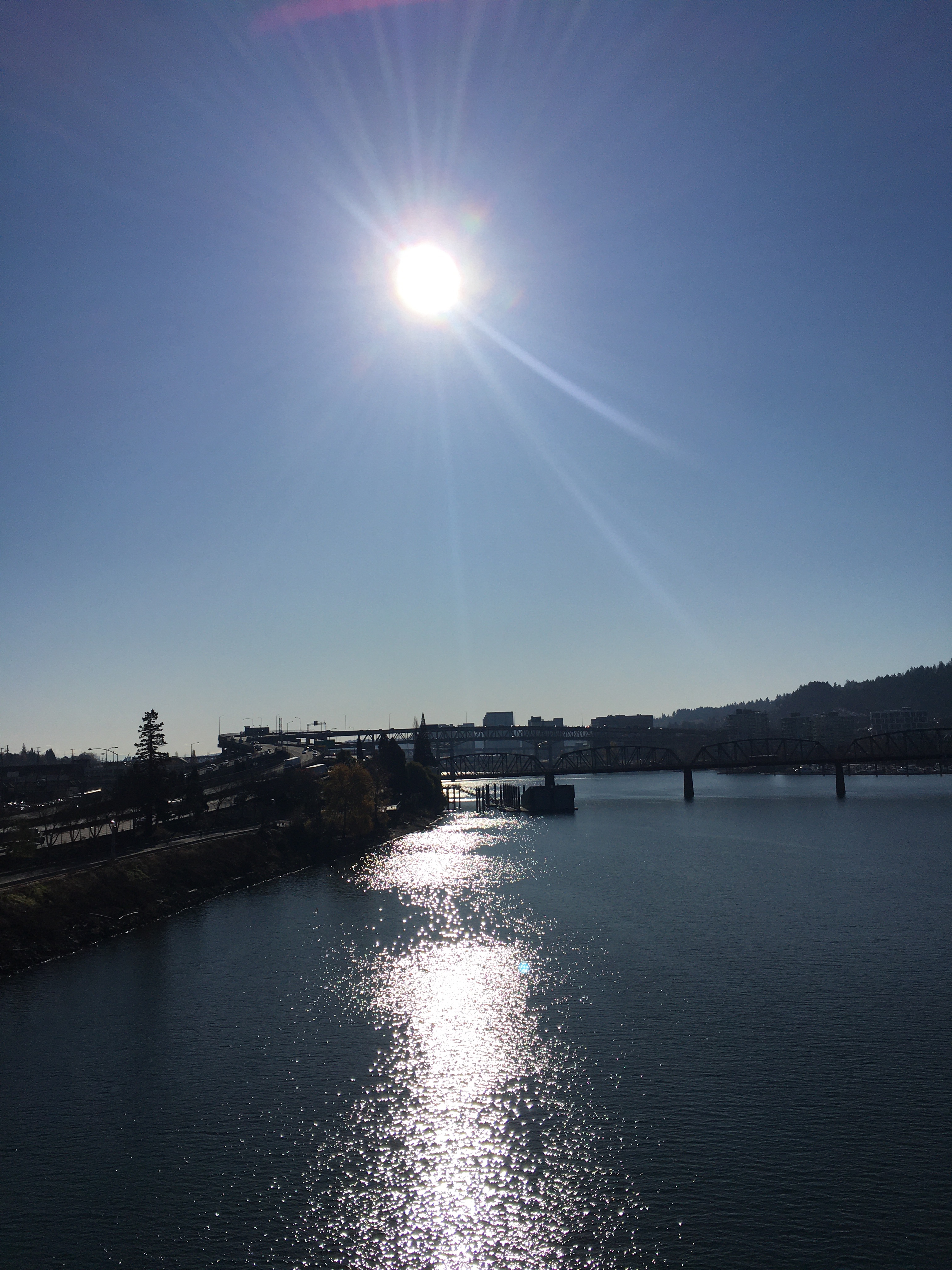 We got to the best bridge in town, the Tilikum Crossing. This bridge is only for pedestrians, busses, and trains. No cars! It is also the newest bridge and not a drawbridge, so it is quieter, without the bangity-bang of the older metal ones.