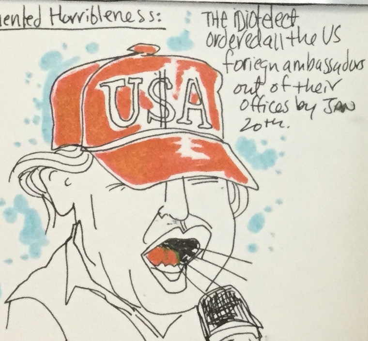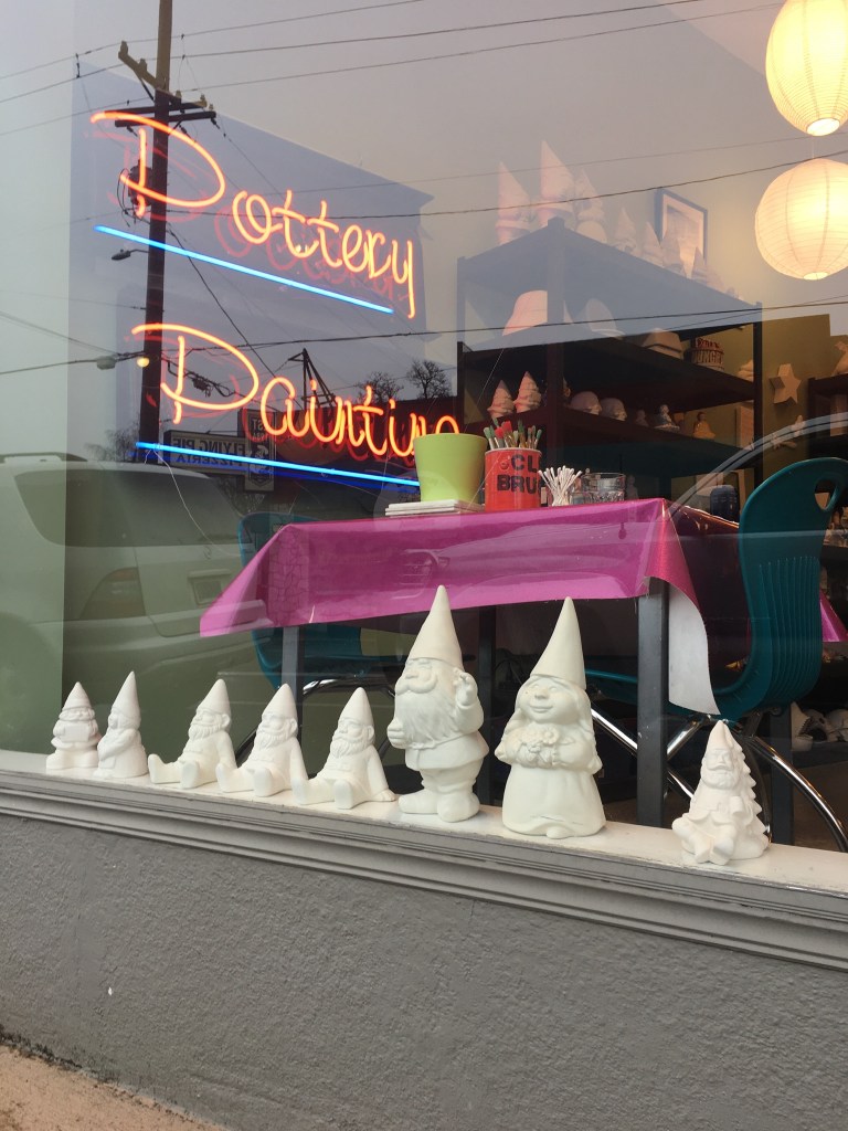 Once we had caught our breath, we headed down the hill for hot dogs and fries at Zach’s Shack. A sparsely populated, shady patio and a Chicago dog put me right again, with the thirteen eyes of the weird mural watching over us.