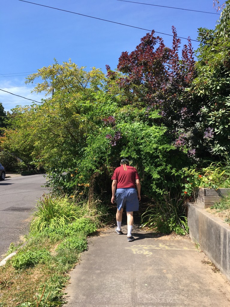 And just a few blocks from home, we found this carefully tended tunnel of bushes and vines, making a cool passage on the by-now really hot afternoon. We appreciated it and headed home for water and a rest.