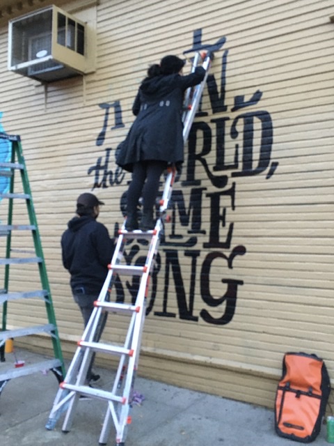 And, of course, whenever I have been making art or looking at art, I always find art out in the world. Look at how these tiny fragile tendrils growing around the gallery door go with the bright pink and green of the new sign!