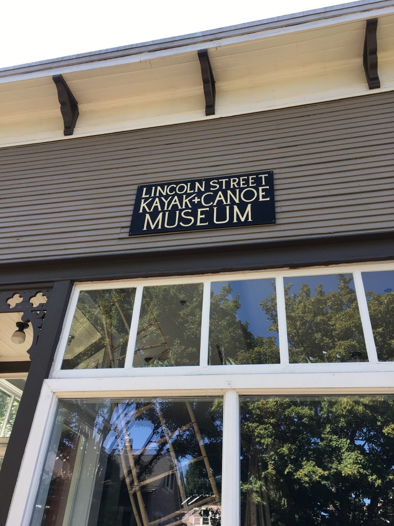 Further on, we found the Lincoln Street Kayak and Canoe Museum, with a small handmade boat in the window, as well as books and other information. It is closed for now, of course, but is delightfully dusty and quirky. According to the website, the collection is mostly full-sized functional replicas of traditional small craft, created by Harvey Goldman, “to augment his research”. Peering through the window, I could just make out the outlines of more than a dozen narrow boats up on racks.