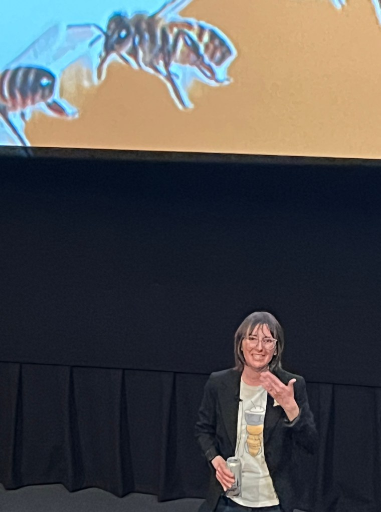 And we did! In Mandy’s hour long talk (complete with great video and even audio recordings of different bee activities) we learned that male bees don’t mate with their own Queen, but with Queens from other hives, at a place called The Drone Zone. This was a complete surprise, and now I wonder where our local Drone Zones are!