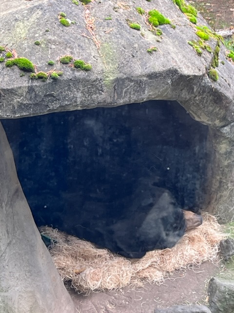 It was a pleasant day…not hot, but sunny. Lots of people, but not crowded. We visited the Pacific Northwest Canyon (my favorite part of the zoo, because it is foresty and has lots of creeks and waterfalls) and acted out being coyotes and rabbits. We talked to the bears and saw river otters napping in their dens.