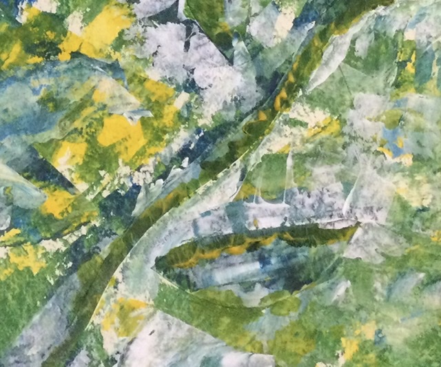 When I showed the fabric to Ruthie and Vimi (our parter in all things goofy and artsy), they said it reminded them of Van Gogh’s “Starry Night”. I didn’t want to copy, but I held the image in my head as I painted and we chatted.