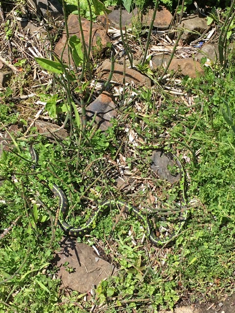 After the ceremony, the girls went back to class and I bought Katie breakfast at the Honeycuspe waffle truck in the food pod in her parking lot. I love how the space is becoming a cheerful outdoor dining spot! The murals, tables, awnings, and repaired paving (which Katie installed herself!) makes it easy to sit and enjoy.