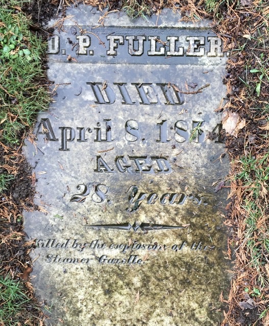 David Fuller’s slab, which says “…killed by the explosion of the steamer Gazelle.”