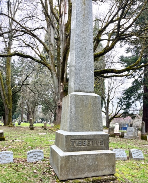 And we met some new folks. This tall monument has always caught my eye because the family name, Tibbetts, was used by local author Beverly Cleary for one of her characters. This time, I took pictures of the stones around the tall marker and did some research on my favorite research site, The Historic Oregonian.