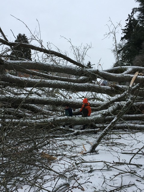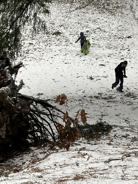 Just as I suspected, kids were in the ravine with their sleds, even though the ground was clearly visible through the icy cover.