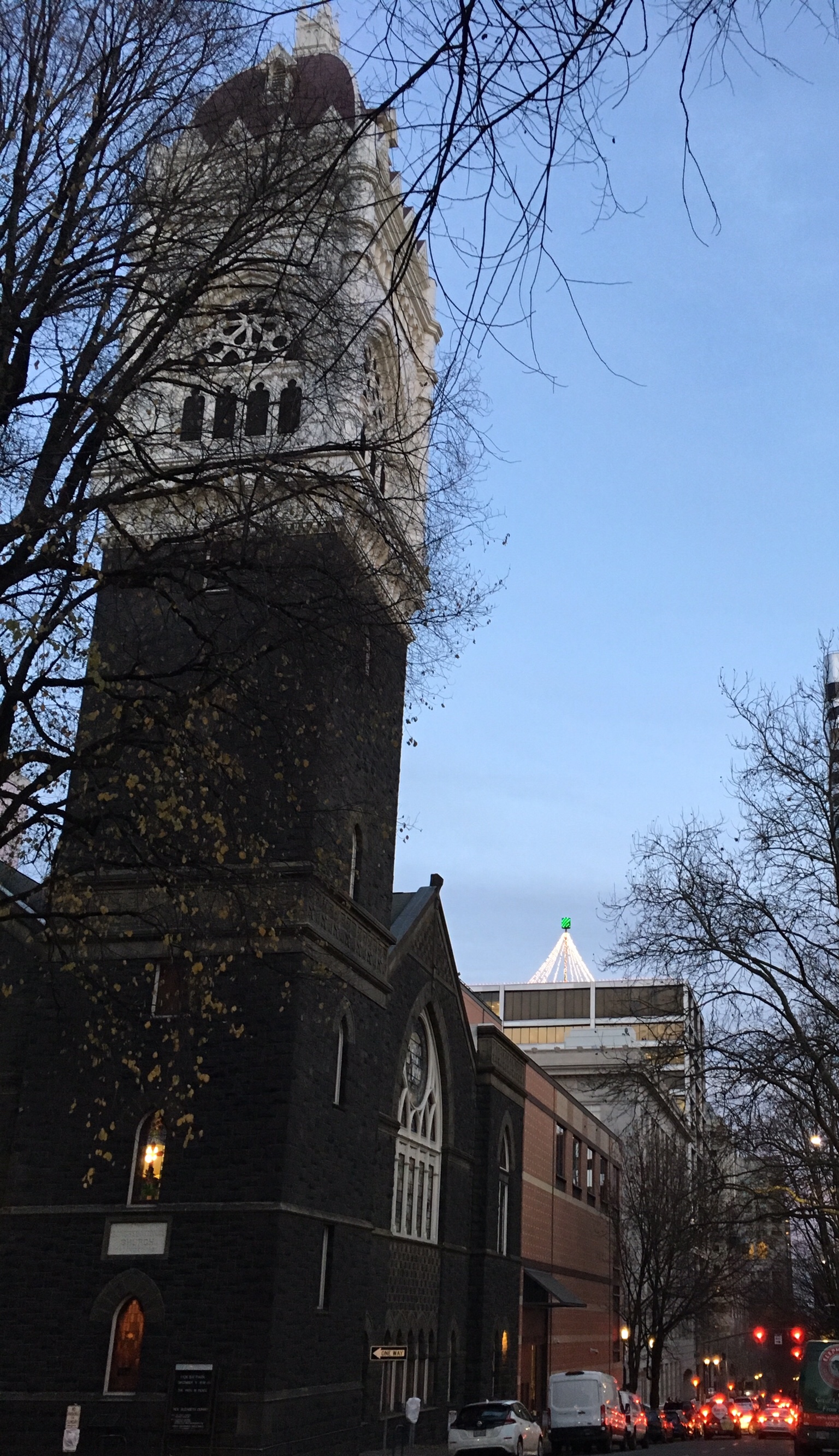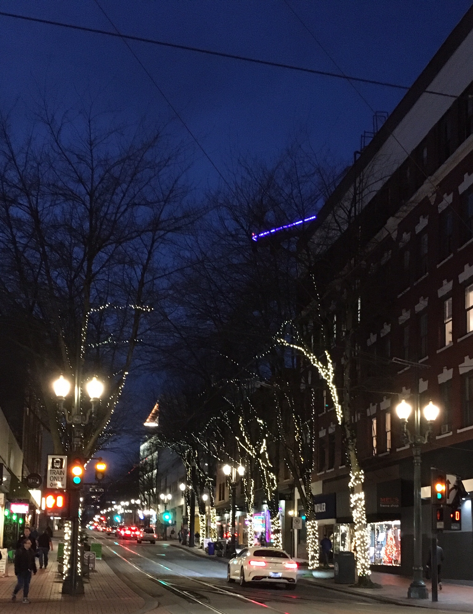 Last night was New Year’s Eve and we celebrated in downtown Portland. The weather was very cold, but delightfully dry…no rain, and just a few clouds, so getting around was easy and everything looked bright and festive.