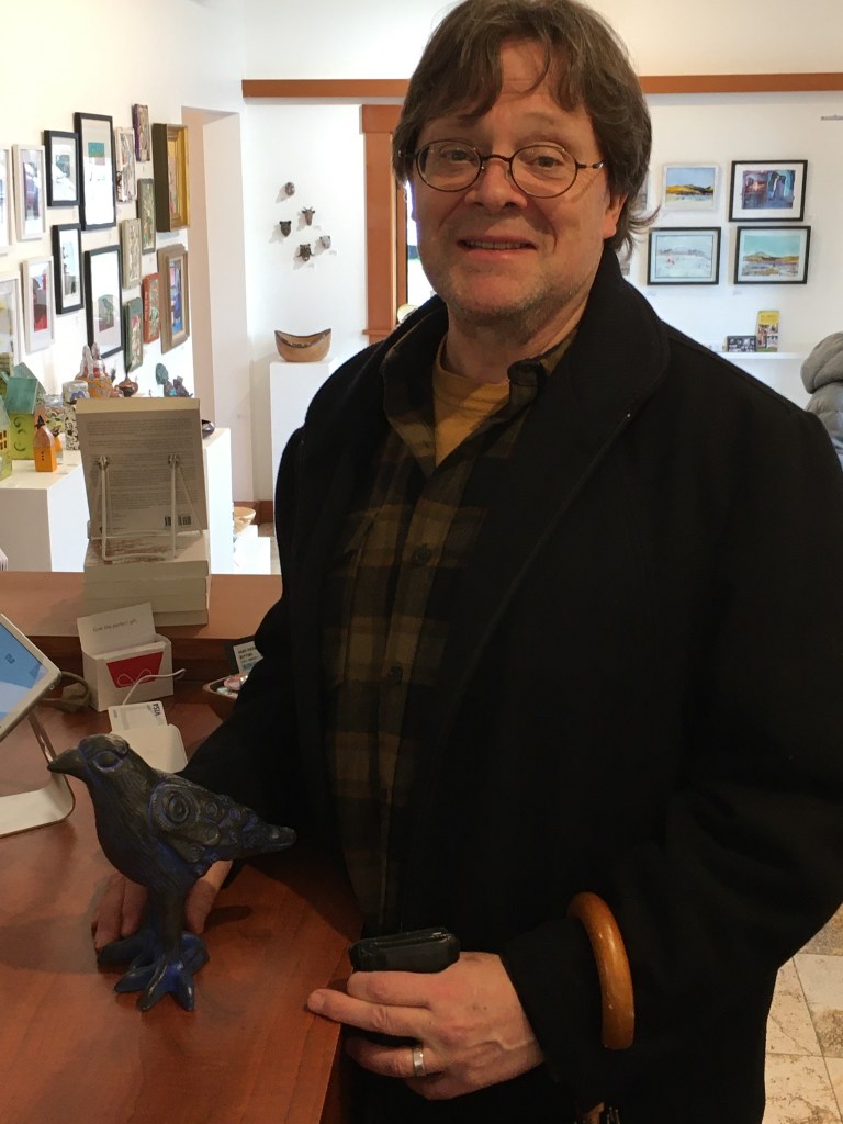 While I was walking around the gallery, I got to see this fellow buy the last of Elizabeth Wocasek‘s standing crows. He said he even had a place picked out for it, beside his fireplace. I am sure they will be very happy together.