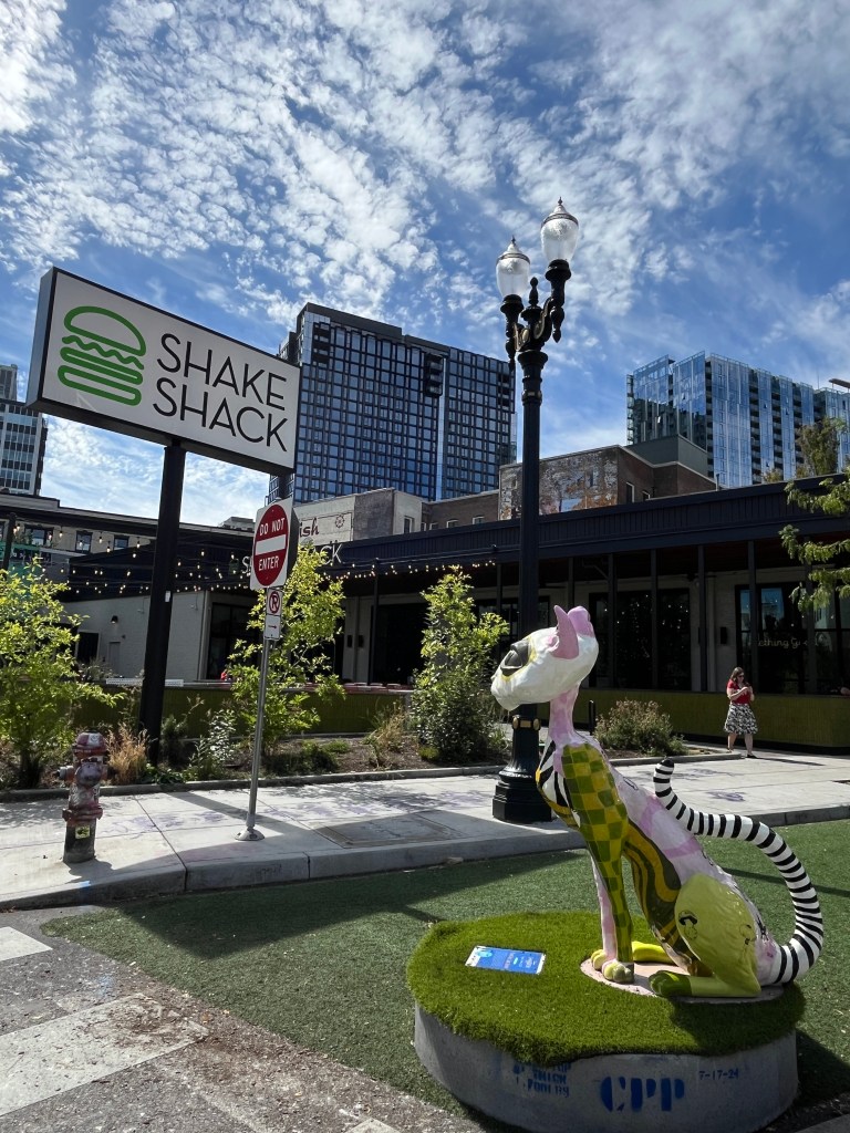 We ate out on the patio and watched the world go by. Moms with strollers, kids on skateboards, old dudes getting off the bus… busy city life going on all around us.