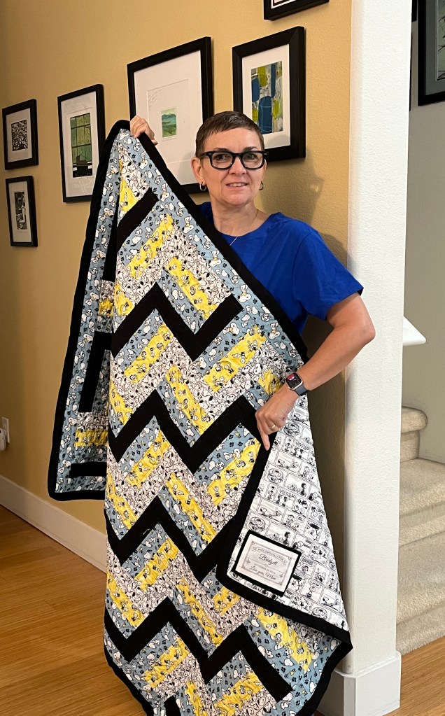 After a quiet morning of breakfast and language practice, she opened her presents, including tee shirts, sketchbooks, and a fabulous Snoopy quilt her Momma Donna made for her. Isn’t it amazing?