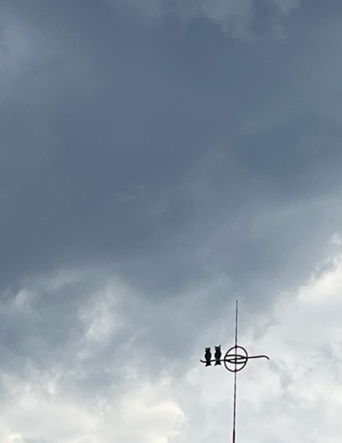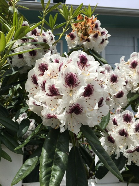 We headed off in chilly sunshine in just tee shirts and jeans. Grandpa Nelson at least wore a hat! But not me. Nope. Caution to the wind Judy, that’s what they call me. We walked past wonderful flowers and the Morrison Street chickens, enjoying lovely rhododendrons. But I couldn’t help noticing…..the clouds….