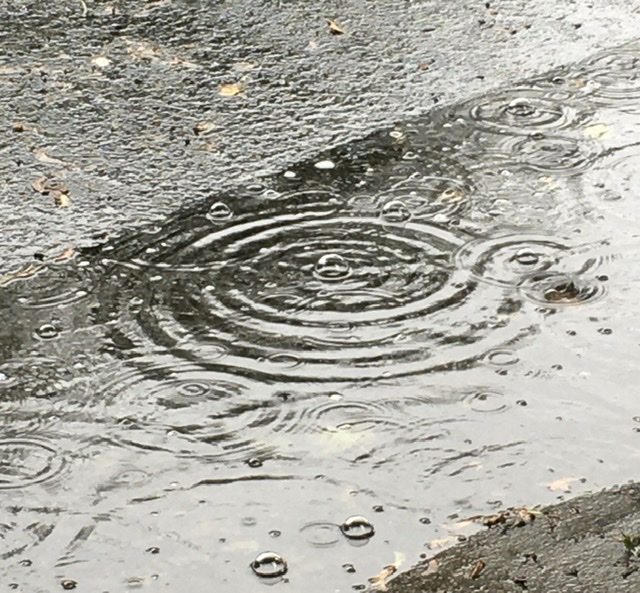 Raindrops hitting the puddles remind me why I love concentric circles.