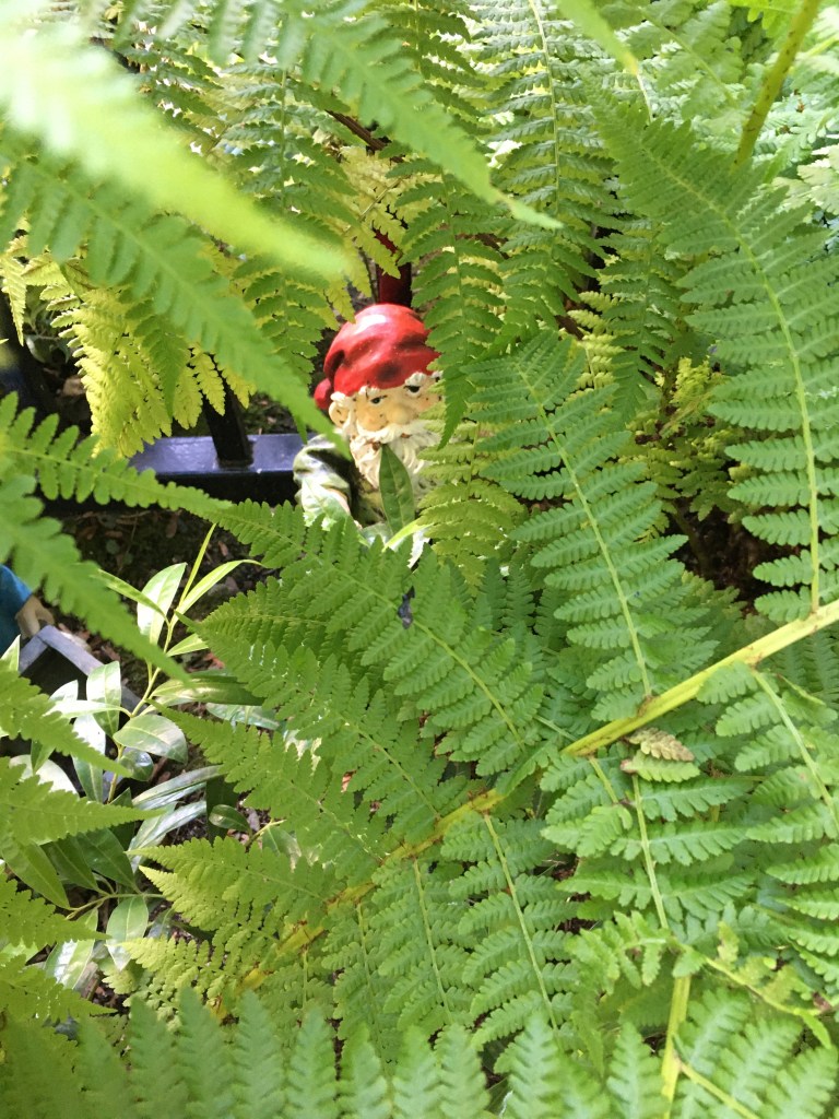 One of our gnomes, lurking in the ferns….
