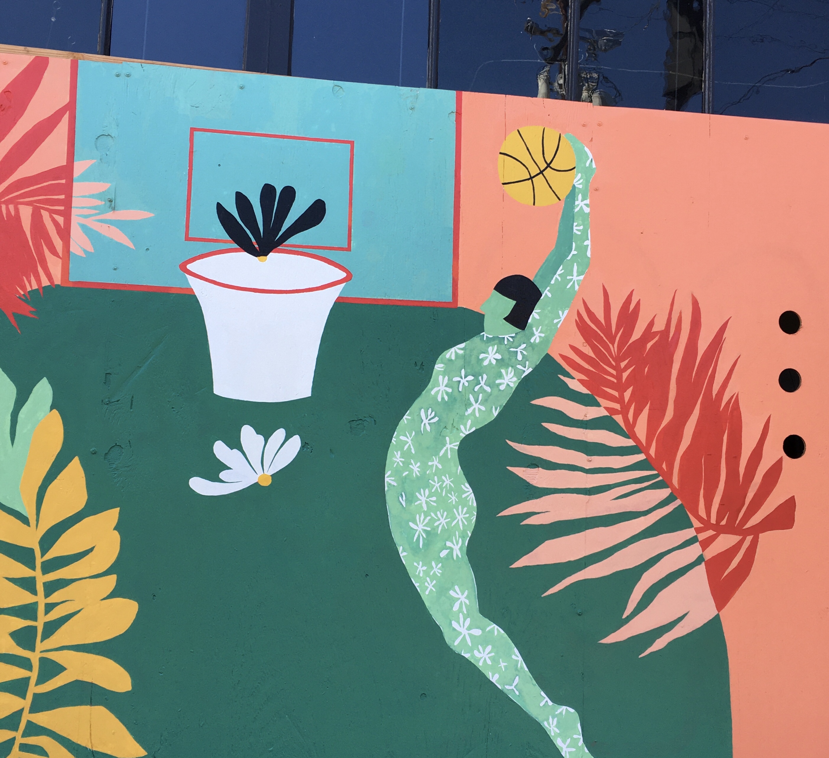 On the way home we stopped at Whole Bowl for lunch, which we ate while sitting on the chairs outside the temporarily closed Common Grounds coffee shop. We stopped at Chase bank to return someone’s lost credit card, and enjoyed some more street art.