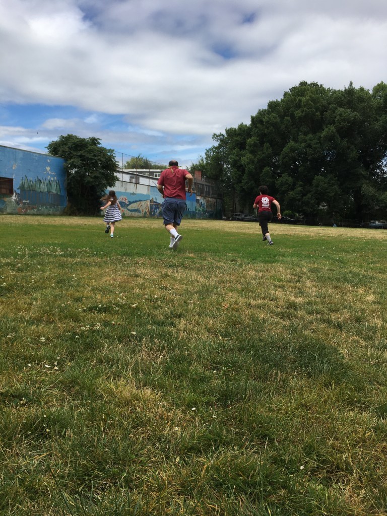 This past Friday, we packed peanuts and half a bottle of wine, bottles of water, and some picnic utensils into a bag and walked down to Sea Sweets, a poke place on Hawthorne. Auntie Bridgett and I got poke bowls, filled with spicy raw salmon, brown rice, seaweed salad, kimchi corn, and pickled ginger. We also got an ice cold ginger beer for Grandpa Nelson, because it was really hot.