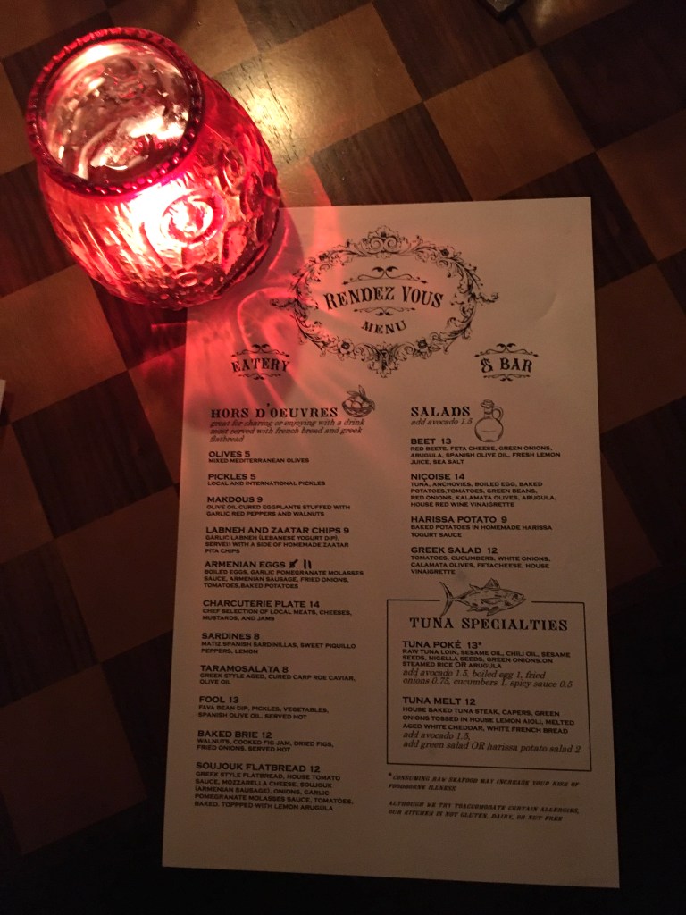 I ate and enjoyed the combination of wine, spice, music, and soft lighting, and being in a new place.