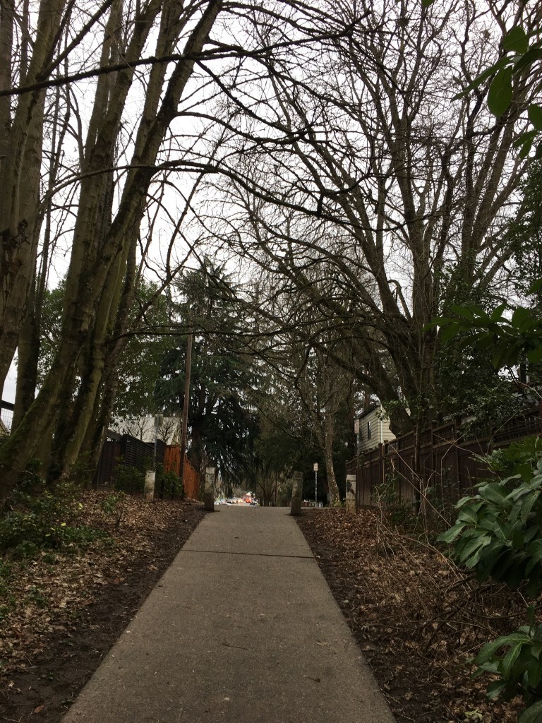We bundled up with scarves and gloves, because it was only about 46 degrees. We wandered through the neighborhood, seeing the winter trees and noticing all the small, promising signs of spring on the way.