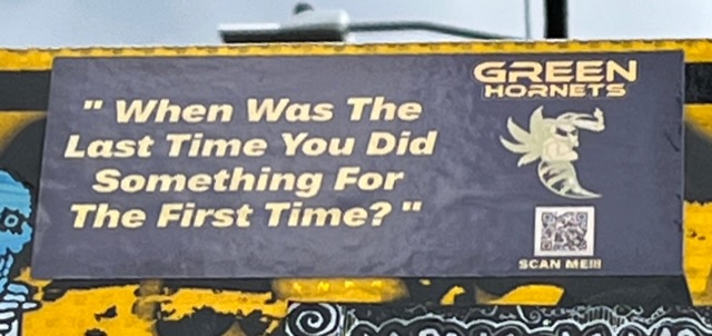 Walking in the neighborhood last evening, noticed this new sticker on a very well-stickered sign, and it got me thinking.