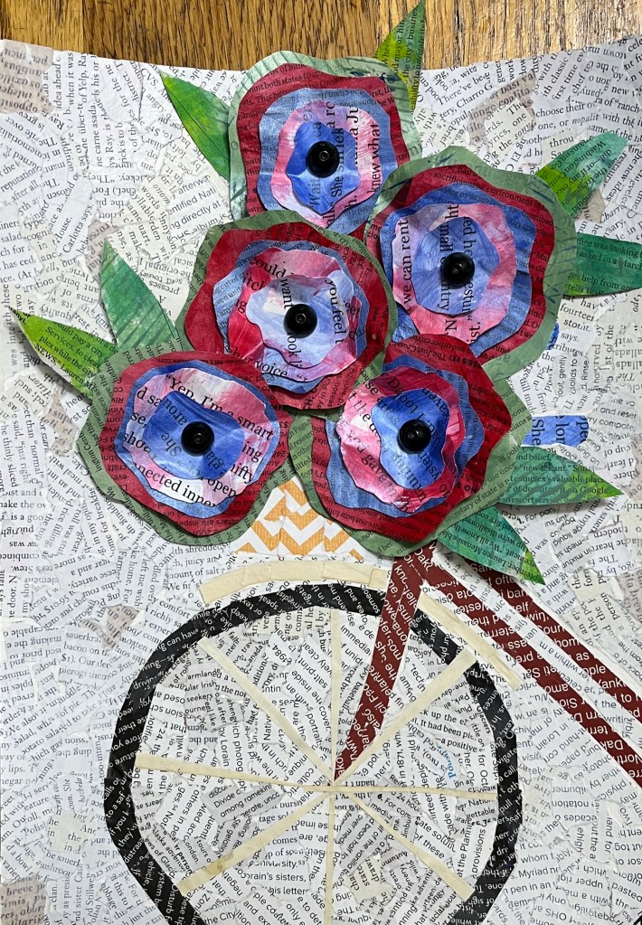 Once I got the hang of making these three-dimensional paper sculptures, I couldn’t stop! The Zoom Art Group I do with Ruthie Inman was still working on theirs, so I started a second one.