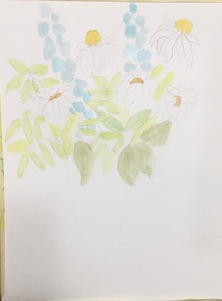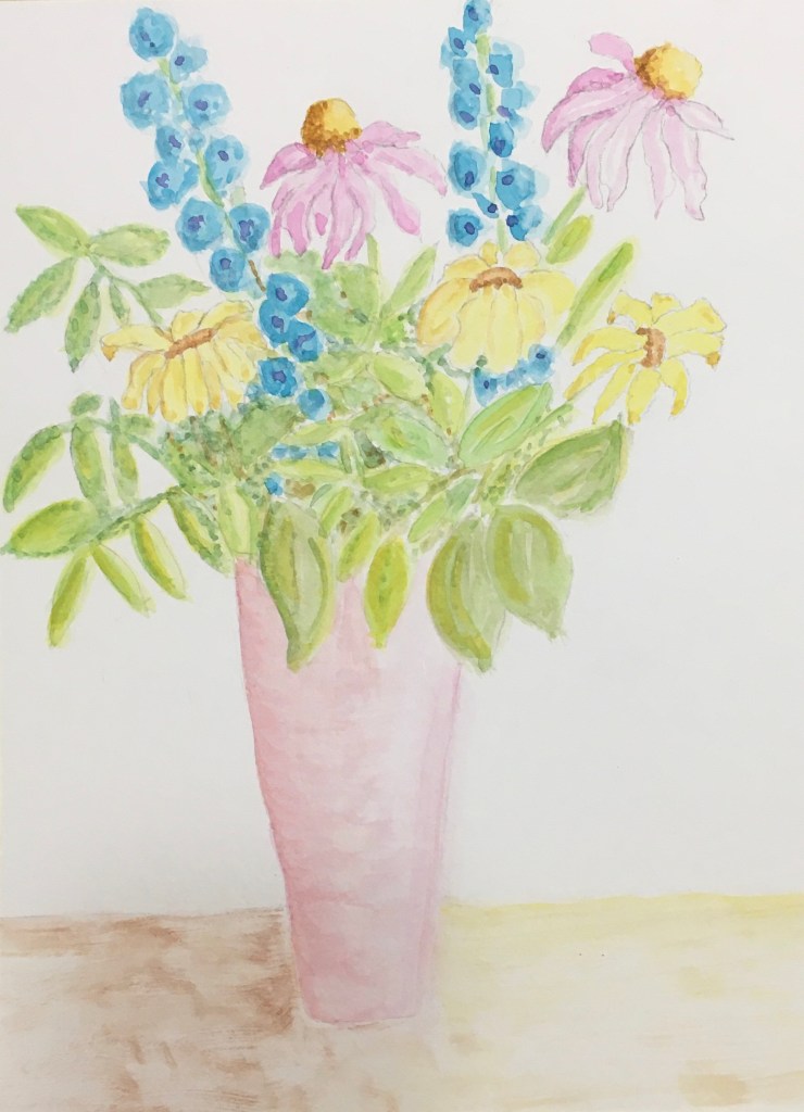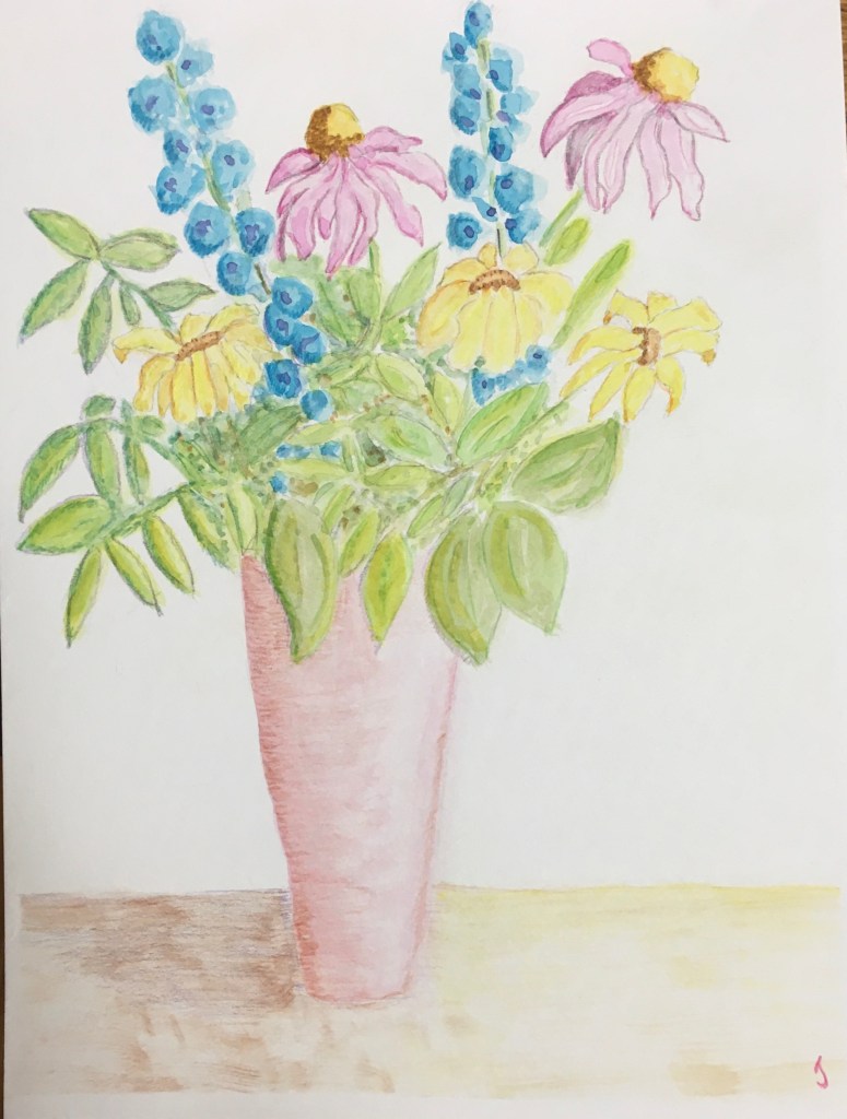 The first of the challenges was ‘bread’. When I think of bread I go straight to a French baguette, eaten on the banks of the Seine at sunset. This piece is watercolor, colored pencils, and waterproof ink.