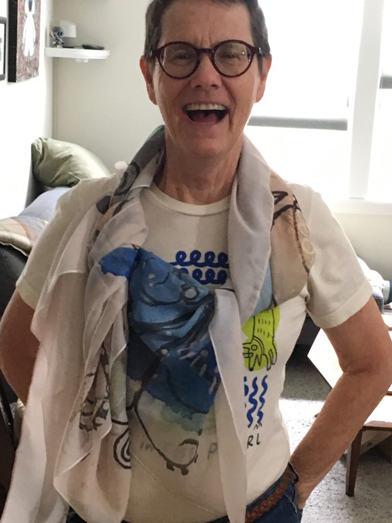 The one I did this morning was my favorite so far, because it was about YOU. The actual topic was sea creatures, but I painted them at the Aquarium, with you.
