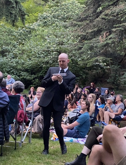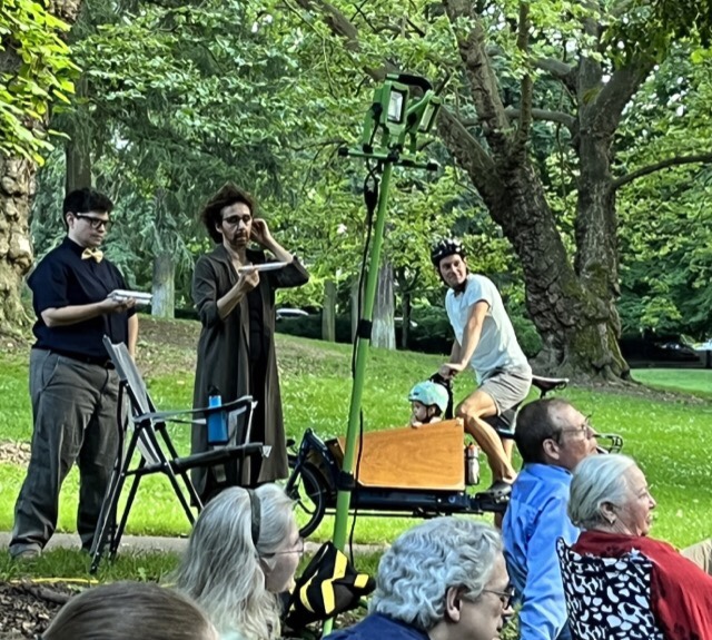 Saturday evening was warm and pleasant, so we headed out for a walk around Laurelhurst. We found a totally new (to us) group of actors putting on Shakespeare’s Julius Caesar.