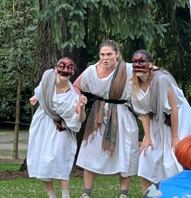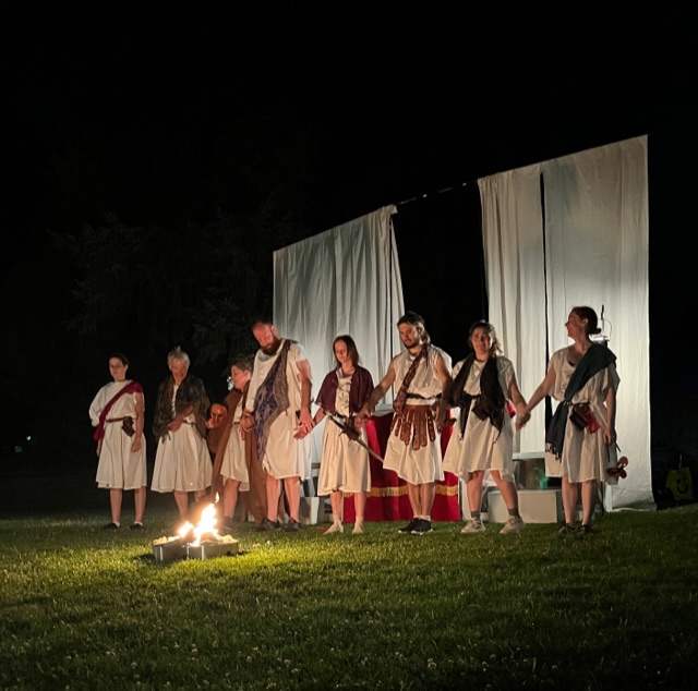 Oregon Adventure Theater rehearses extensively and works to understand and present the relationships between the characters. In this production, Brutus and Cassius do not just yell at each other; they disagree, hurt each other, cry, and make up. They are human beings, doing human things for human reasons.