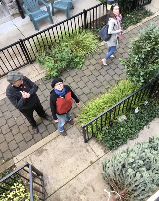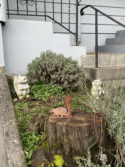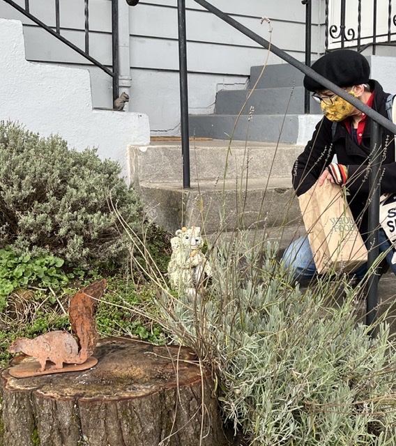 We took some peanuts on our walk to the market and left them along the fences. And for the most special part, we stopped at these small squirrel statues in front of some apartments, and we left more nuts there.