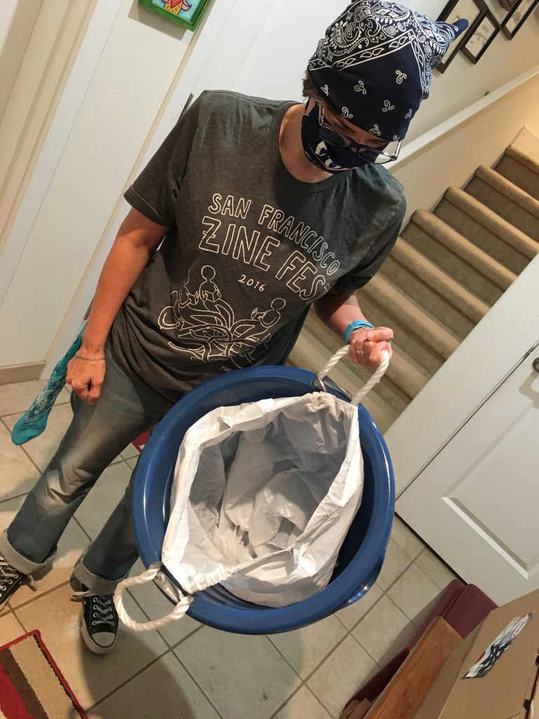 I am sorry for the lack of photos to tell this story, but it was difficult to use my phone while wearing gloves, a mask, and carrying a bag and grabbers. I made a choice to do the work well instead of photo-documenting.